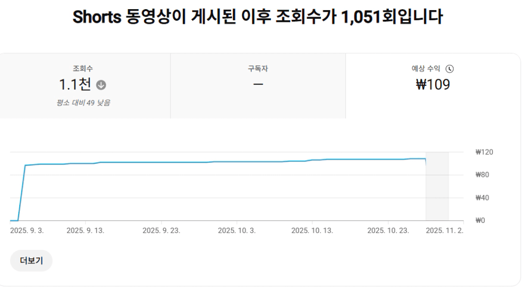 조회수 1000회 정도 나온 영상의 수익은 단돈 100원입니다.
