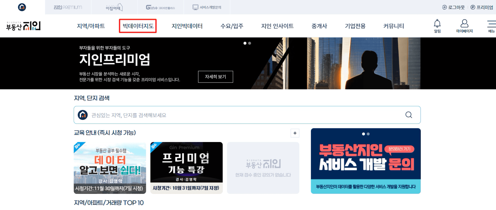 ※ 참고로 부동산 지인은 지도/그래프 등을 활용하여 시세, 공급량 등 부동산 관련 데이터를 제공해주는 곳 입니다.