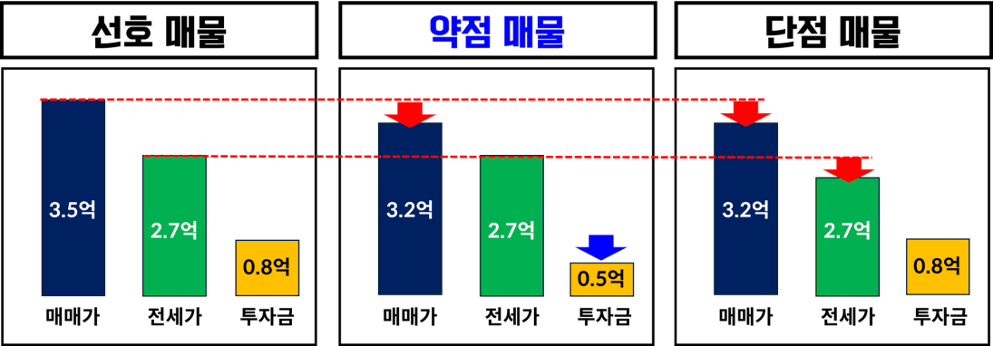 약점이 있다 하더라도 전세가격이 비슷하다면,