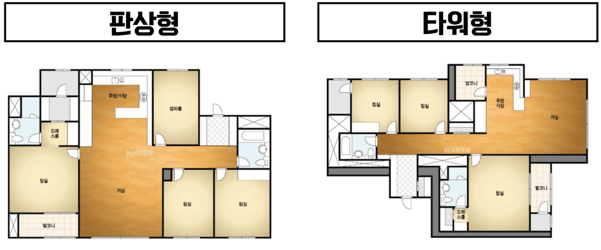 예를 들어, 같은 단지 내 타워형과 판상형의 전세가가 비슷하다면