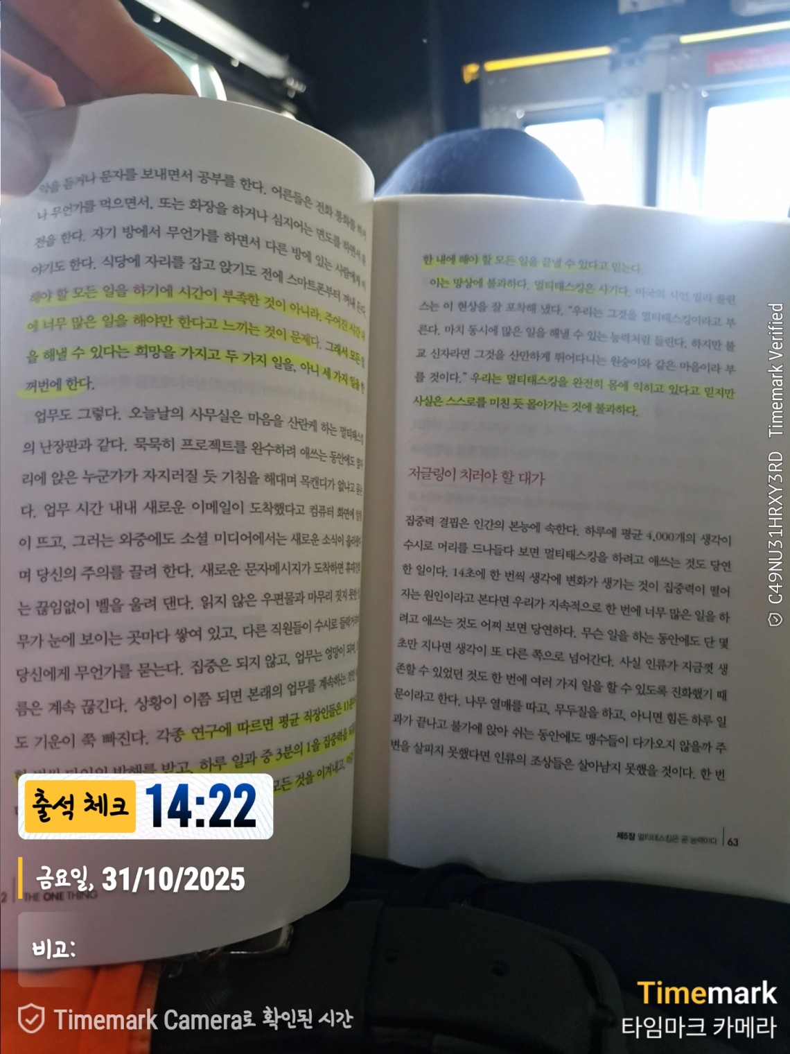 회사 복귀 20분전 쪽시간을 활용해서 독서하기