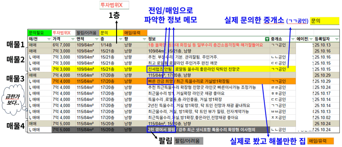현장에서 알게되는 찐 장부물건도 적어두시고요!!