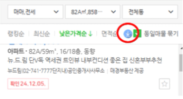 '동일 매물 묶기'와 '낮은가격순' 정렬 후