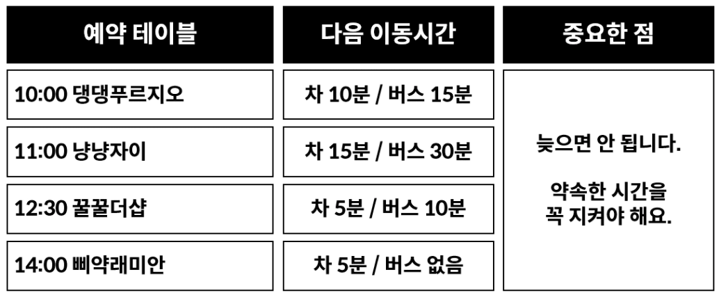 늦지 않도록 짜야 합니다.