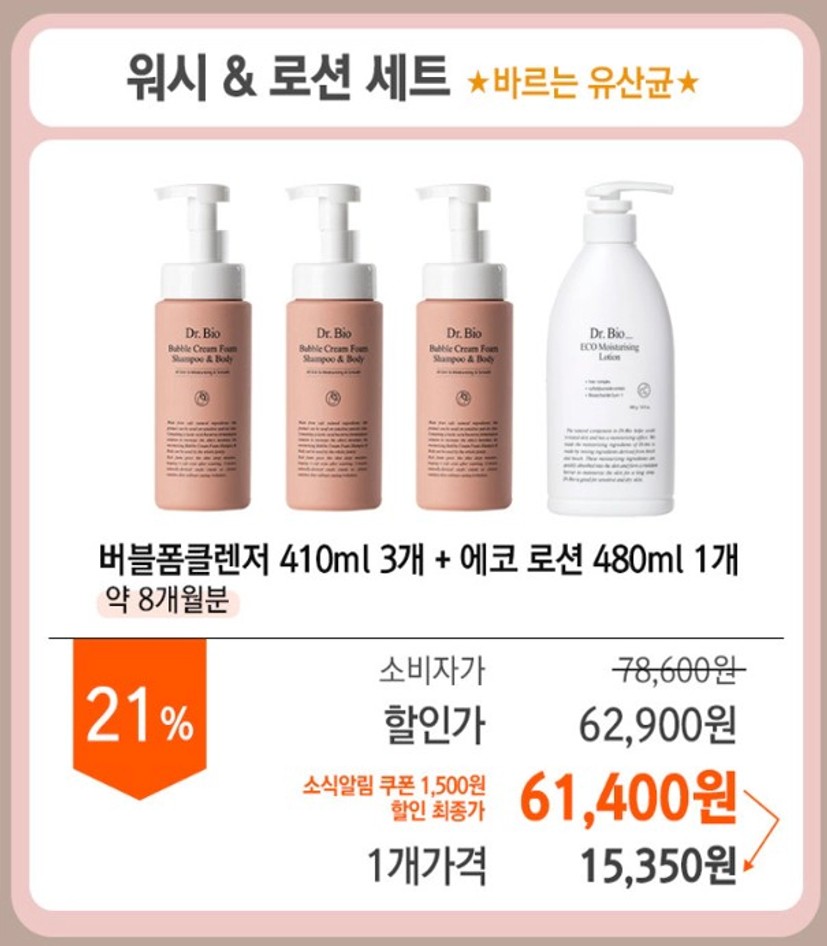 ‘지금 주문하면 바디워시 300ml 추가 증정. 오늘만 20% 할인 적용. 선착순 100명 사은품 증정.’
