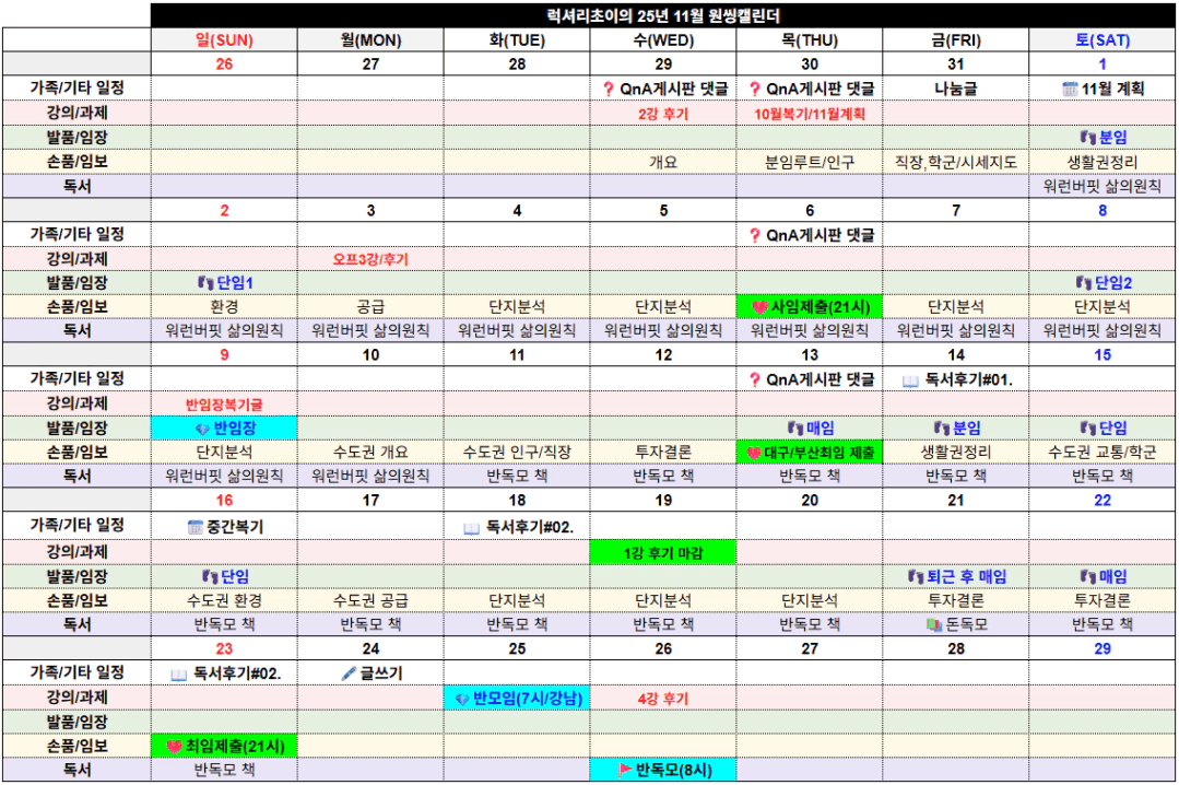 이런 나눔의 기회를 반강제로 주시는 월부학교 환경에 감사한다. (혼자 하려고 했으면, 분명 게으름에 하지 않았을 일인데 ㅎㅎ)