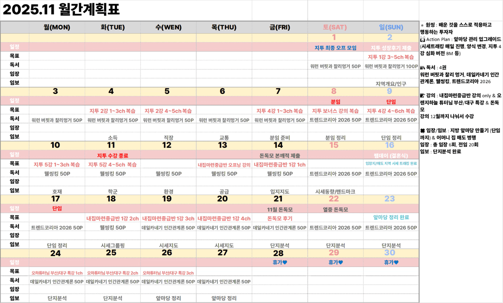 🙌 Action Plan : 전체 앞마당 관리 루틴화 (시세트래킹 최소 매일 10분, 후보지역 전수조사 등)
