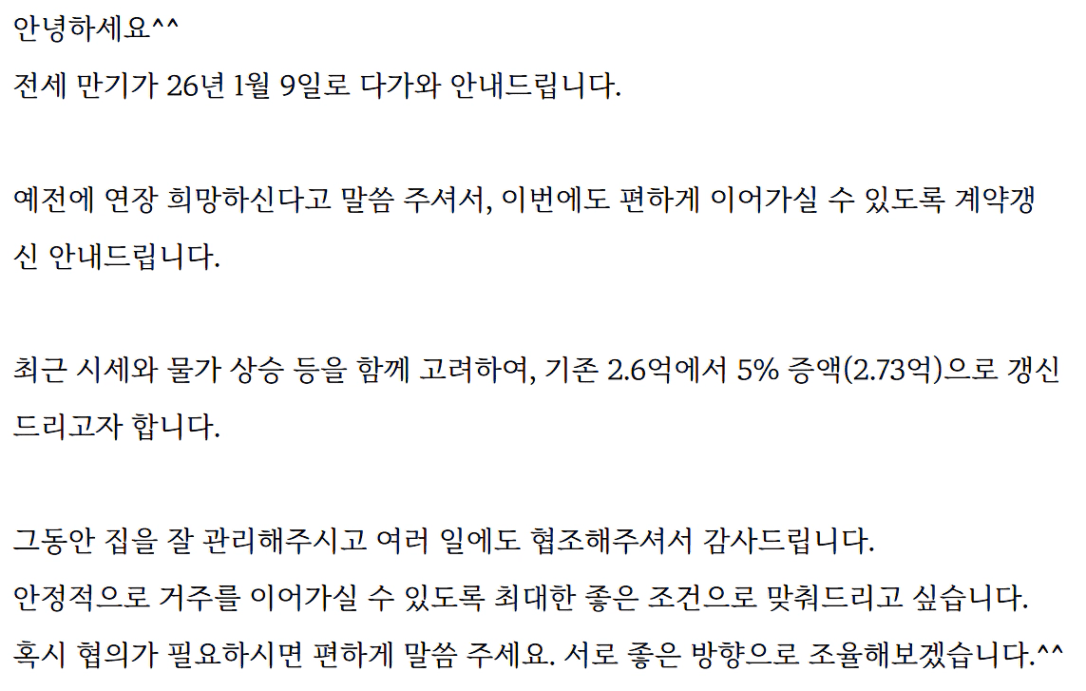 기쁜 마음으로 갱신 계약을 채결할 수 있었습니다.