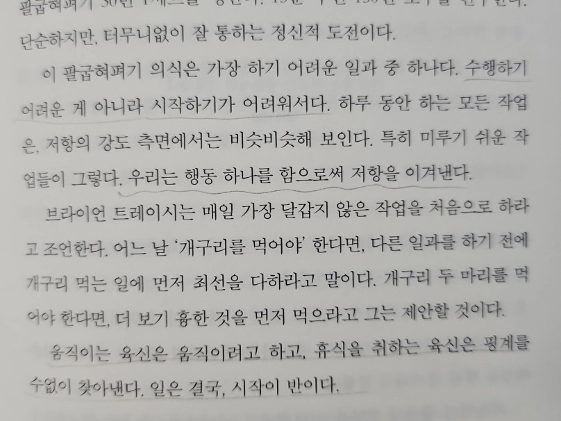 - 우리는 행동 하나를 행함으로써 저항을 이겨낸다.