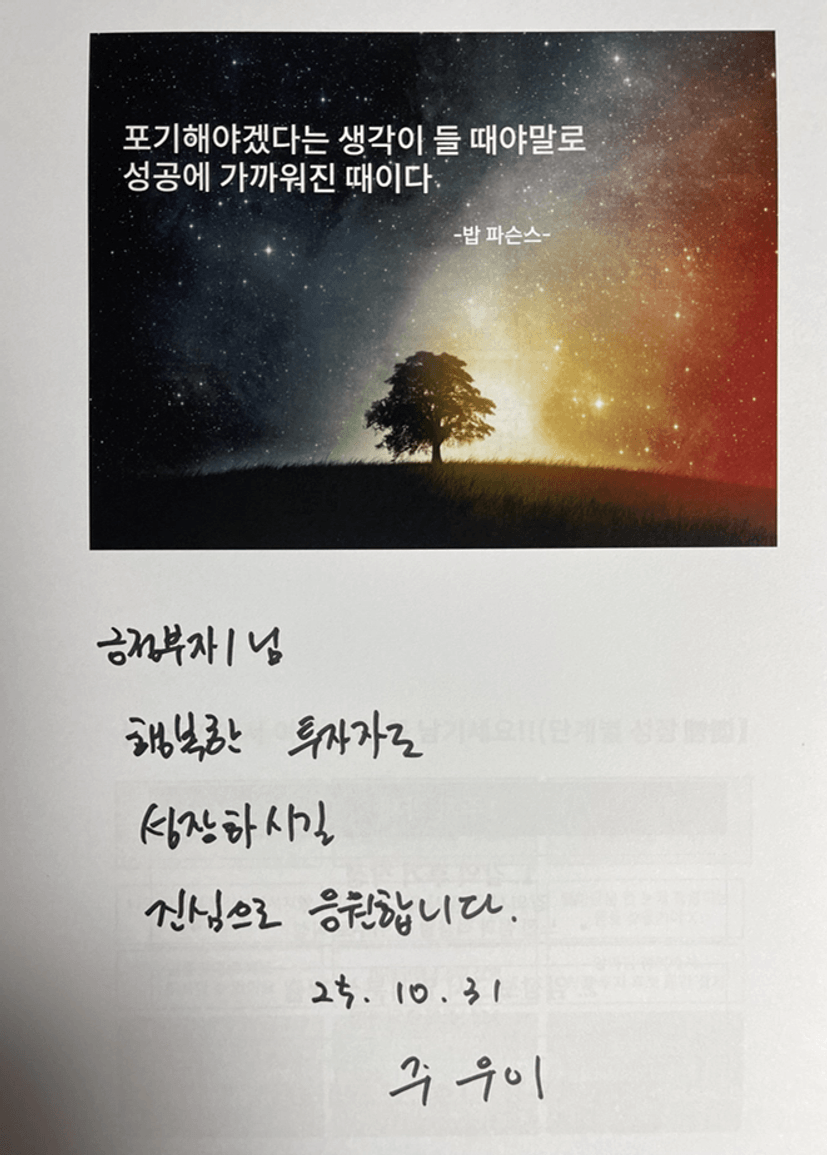 저 투자했어요! 그 한마디면 100% 만족 할 것 같습니다" (주우이멘토님의 진심이 가득담긴~)