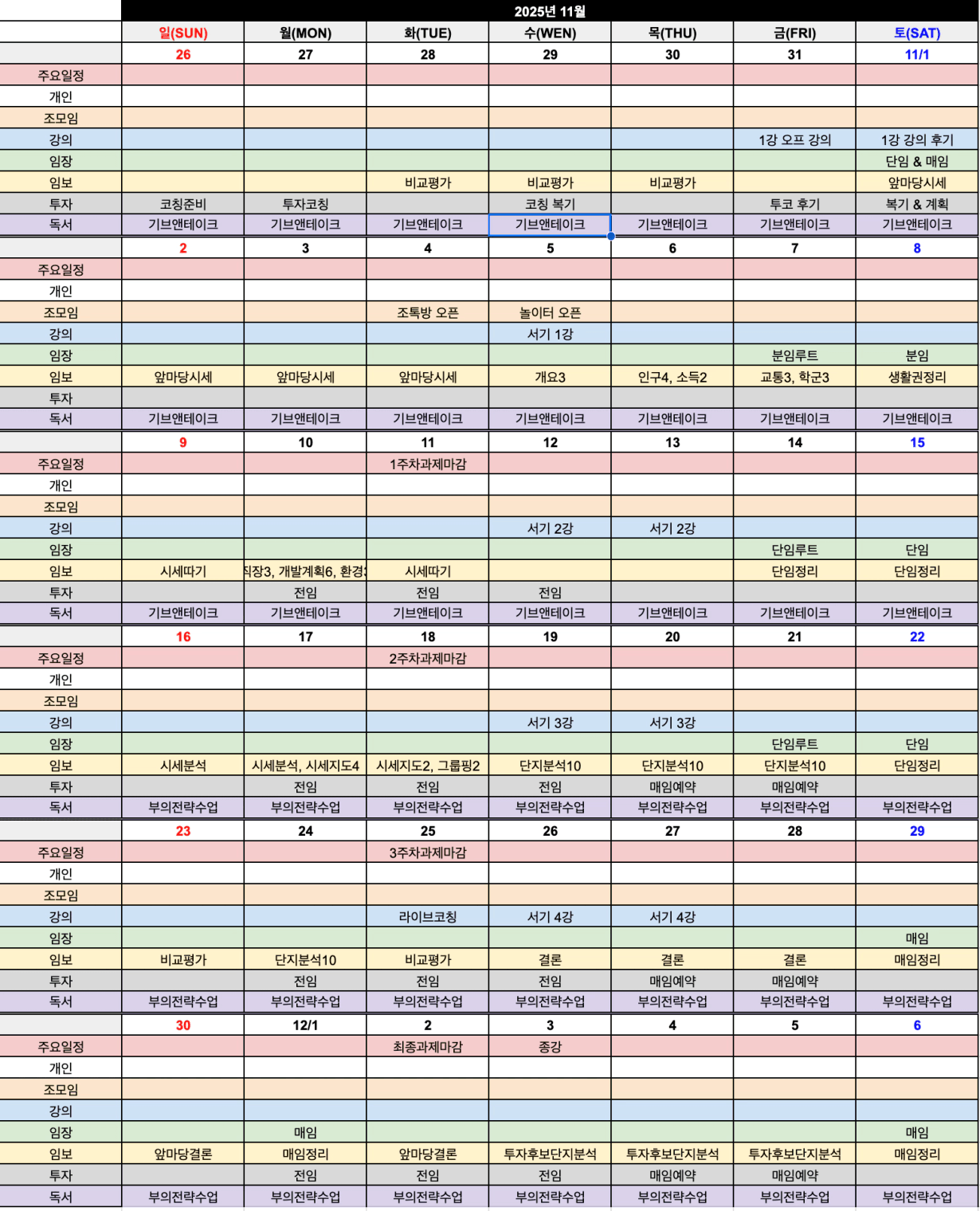 25년 10월 복기 및 11월 계획을 적어봅니다.