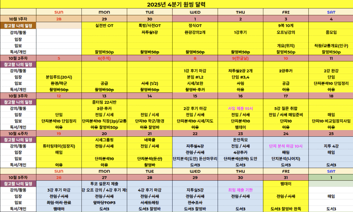 목표 : 전임 30회 & 매임 30개 이상 & 평일 전임