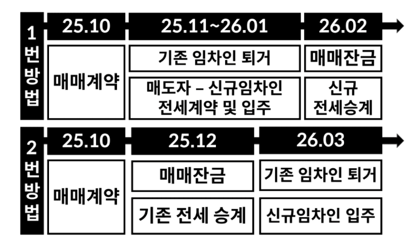 1번은 기존 임차인 퇴거 -> 매도자&신규임차인 전세계약! -> 신규 전세 승계