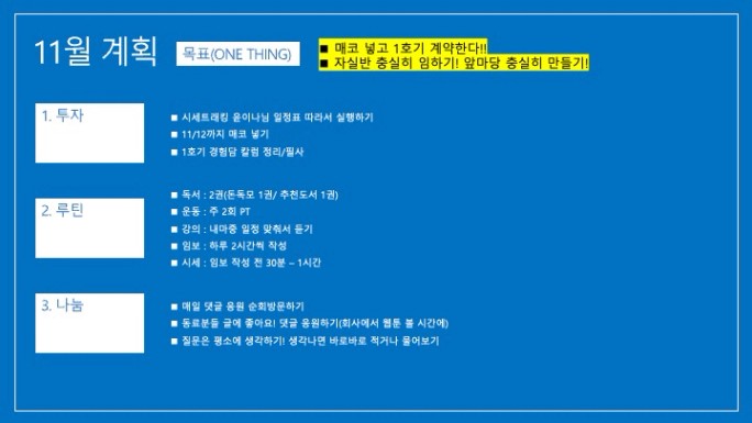 11월 12일까지 매코넣기!!! 물건 벌써 잘 찾아놓으셨나보군여!! 꼭 매코통과해서 실전투자까지 이루어지시길 바랄게요!! 10월 한달 고생 많으셨습니다!!