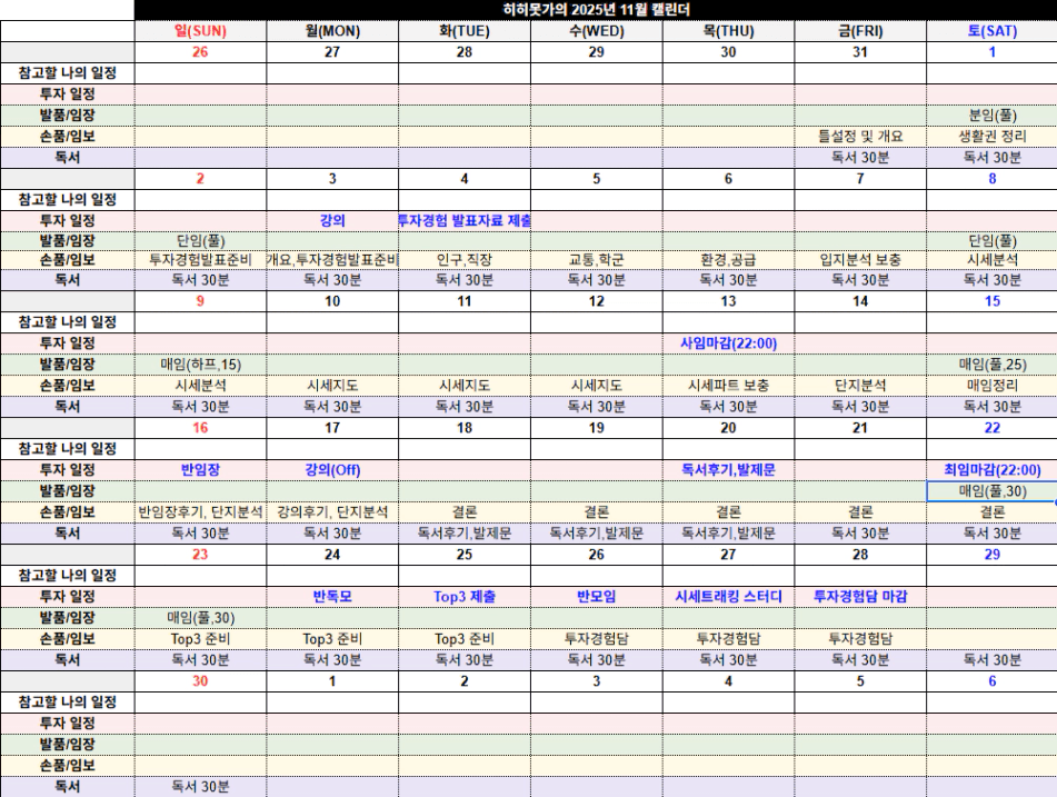 - 원씽캘린더 더 구체적으로 쓸 것(특히 임장 관련 수치 적용)