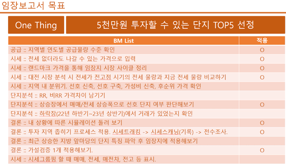 - 원씽 : 5천만원 투자금으로 할 수 있는 단지 5개 선정(O)