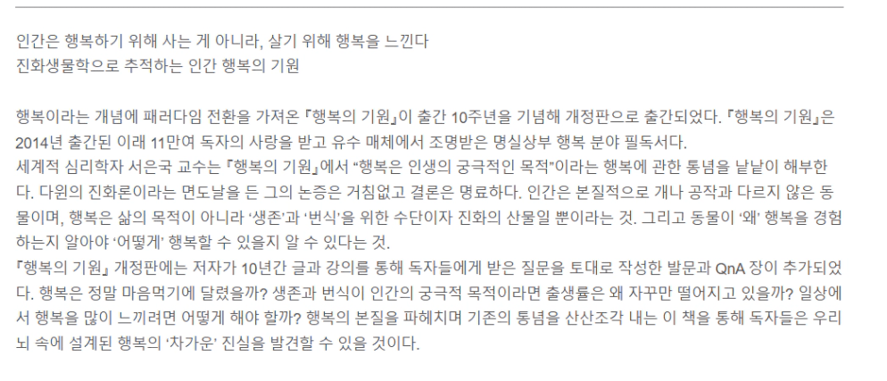 책 제목(책 제목 + 저자) :행복의기원/21세기북스