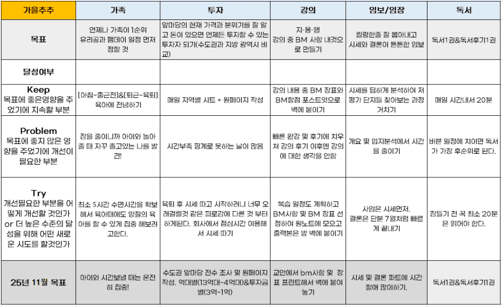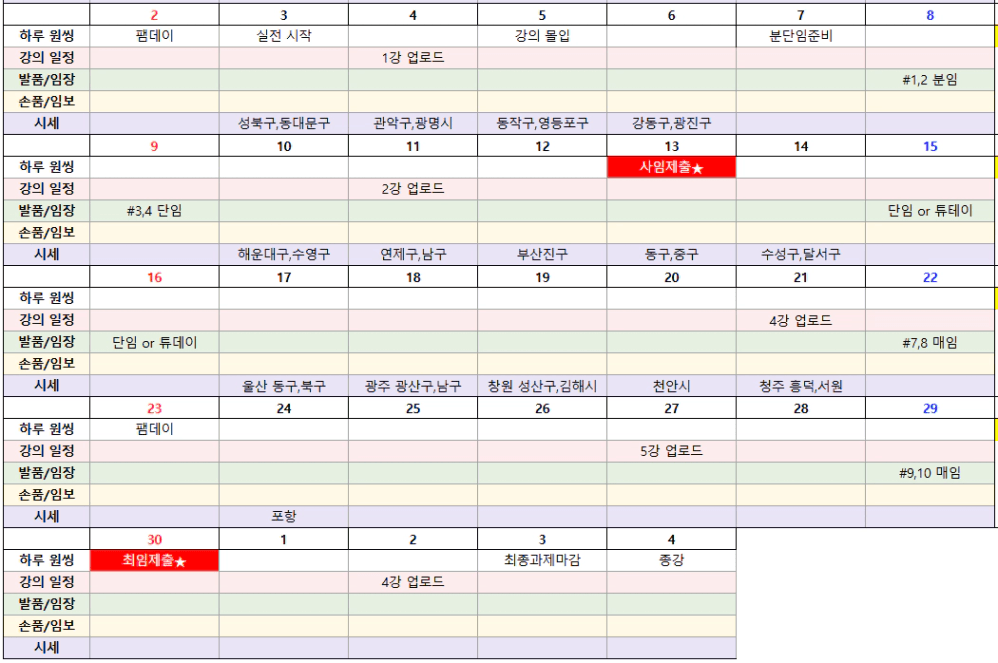 10월은 특강과 자실로 한달을 보냈다. 임장은 분단단 다녀왔고 임보는 단지분석까지 마무리 된 상태이다.