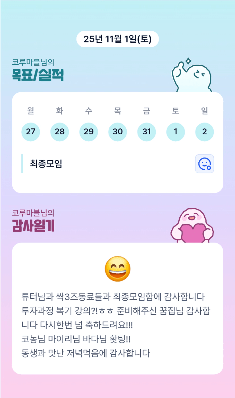 조장님 이번한달 넘 고생많으셨어요 넘 감사드려요!!