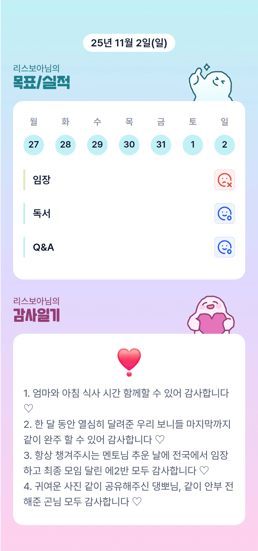 리부님 10월 고생많으셨습니다 ♡ 11월도 같이 화이팅해보아요!