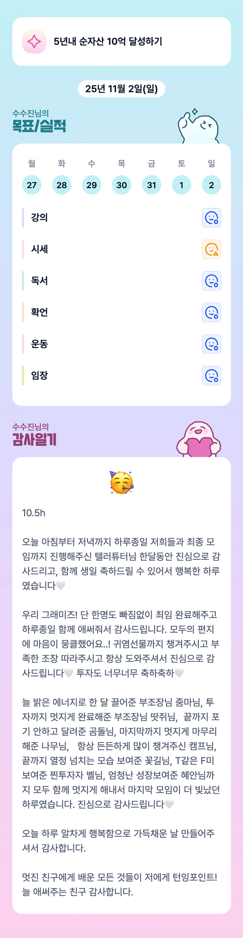조장님 덕분에 10월 잘 마무리 할 수 있었습니다~!! 감사합니다! 실전도 빠이팅!!