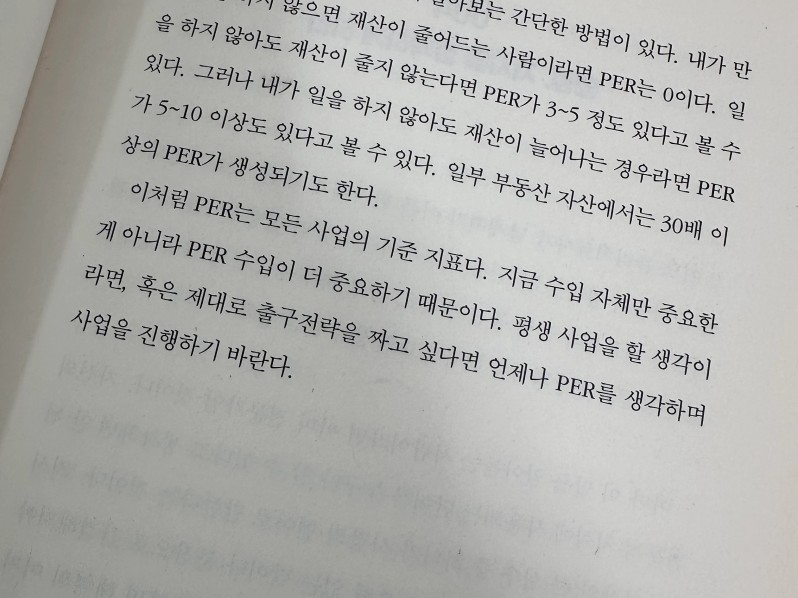 PER은 모든 사업의 기준 지표다. 수입자체만 중요한게 아니라 PER 수입이 더 중요하다. 평생 사업을 할 생각이라면 제대로 출구전략을 짜고 싶다면 언제나 PER를 생각하며 사업을 진행하라.