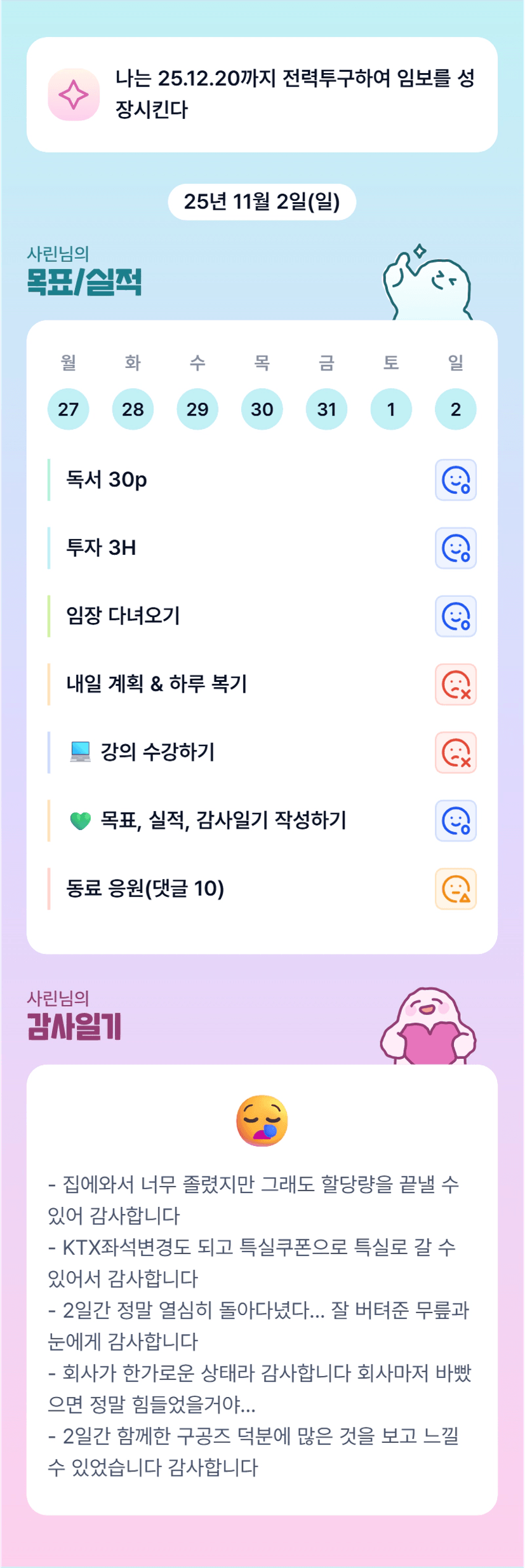 사린님 고생 많았어요~ 하고자 하는 의지 정말 칭찬해! 몸도 돌보면서 하자구욧!!!
