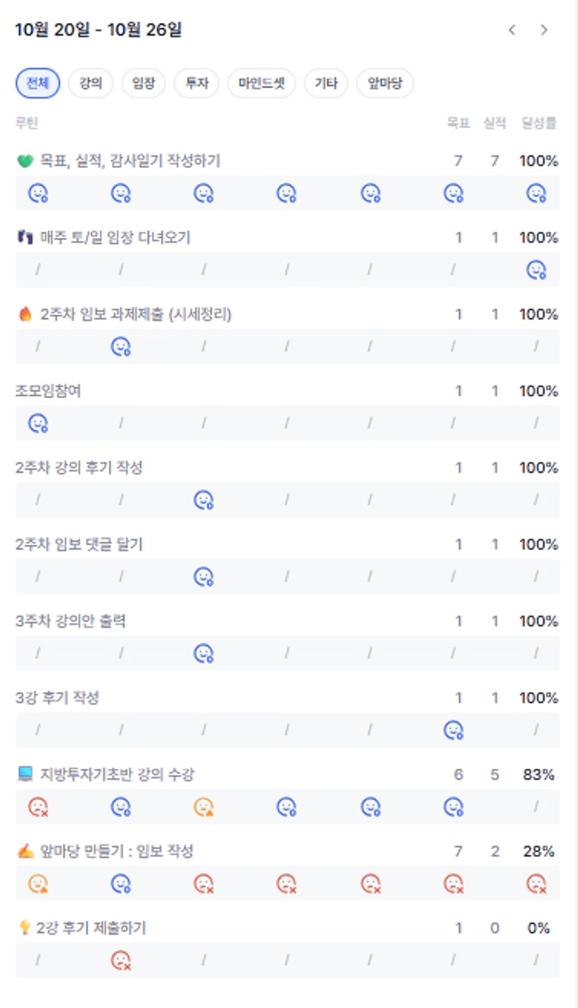 3주차는 자모님 강의를 완강하는 것을 목표로 삼았고, 완강을 해서 뿌듯했다.