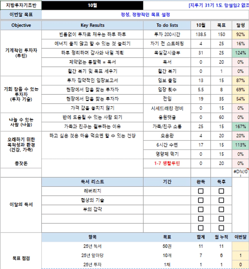 - 임장, 임보는 목표 대비 덜 달성하긴 했지만 그래도 예전처럼 해내고 있다.