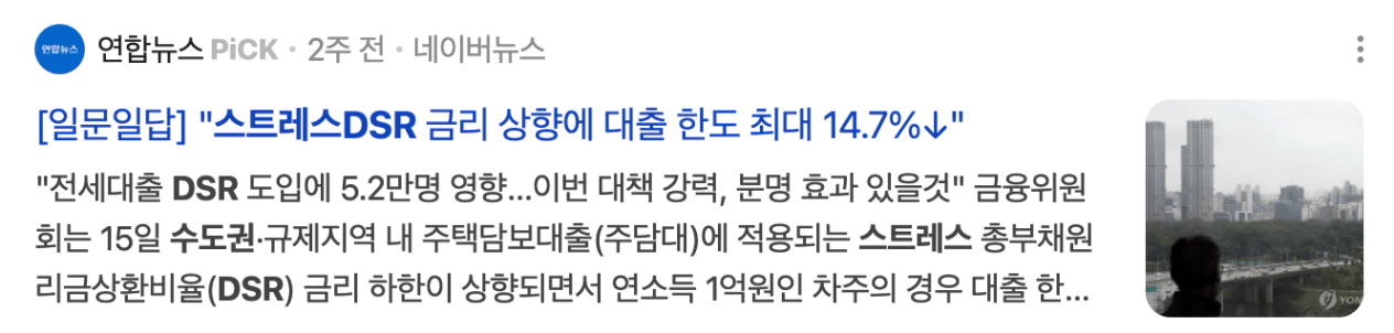 최근 25년 7월 1일부터 스트레스 DSR 제도를