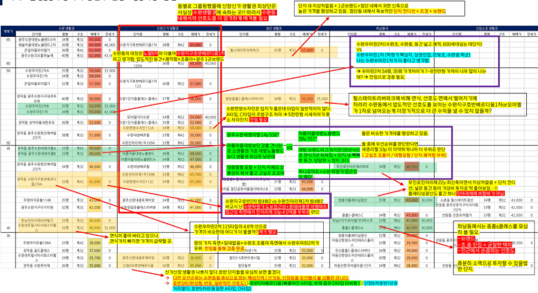 지역별 선호도 상,중,하로 나눠 스캐닝할 것/ 억대별 장표는 비효율적이었음