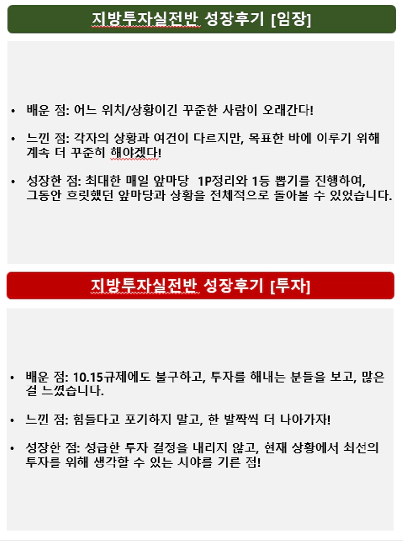 라매님 진짜 멋진분... 매일매일 앞마당 원페이지 정리하는게 쉽지 않으셨을텐데 매일 톡방에 올려주셔서 모르는 동네도 한번씩 볼 수 있어서 감사했습니다! 늘 투자할 단지를 찾고 전임하시는 모습, 그리고 배운 점을 바로바로 적용하는 수용성! 라매님께 배운점이 많은 것 같아요! 앞으로도 좋은 모습 많이 보여주세요👀💜