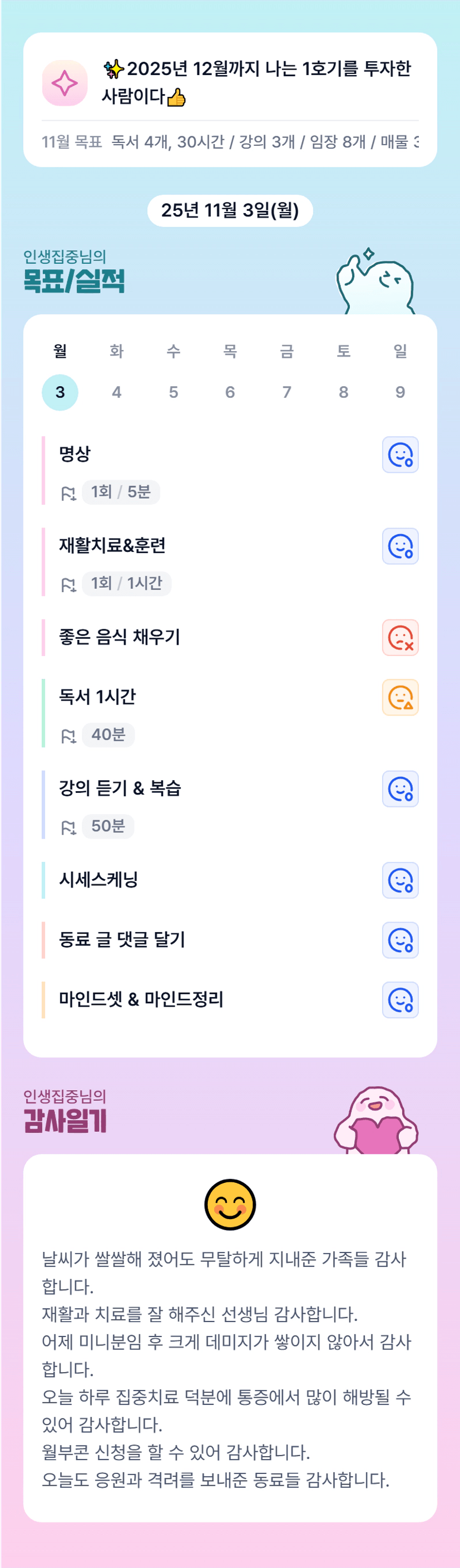 오늘도 수고 많으셨어요! 날이 추워졌으니 임장 때 따뜻하게 챙겨입으시구요!! 재활하시는 와중에도 끊임없이 노력하시는 모습 진짜 리스펙입니다!!!
