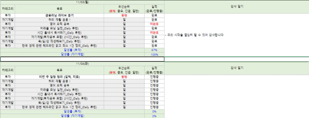😎 11/3 실적 & 감사일기, 11/4 목표 😎