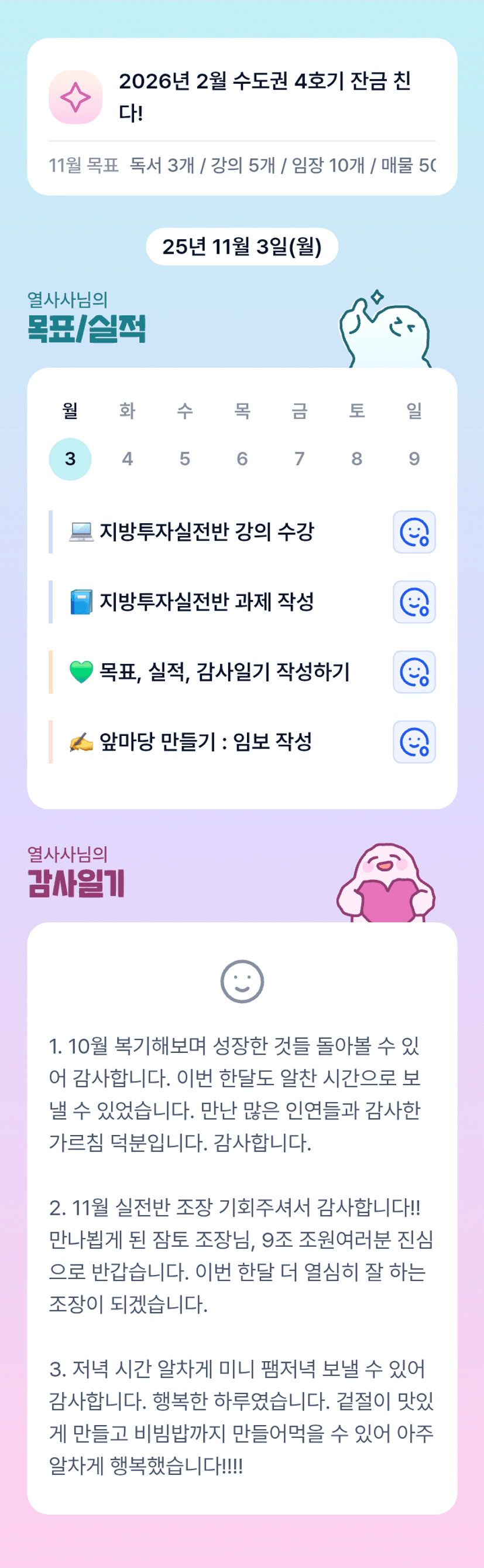 4호기 잔금!!! 사사님 열시미 달리고 계시네요 늘 응원합니다!! 나의 첫 조장님~~~~