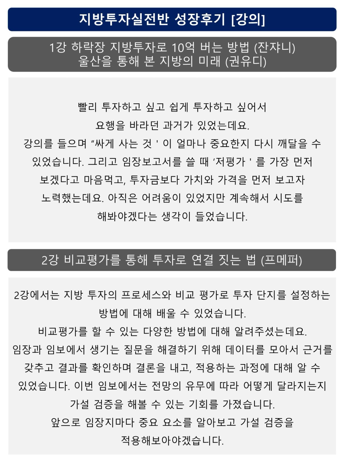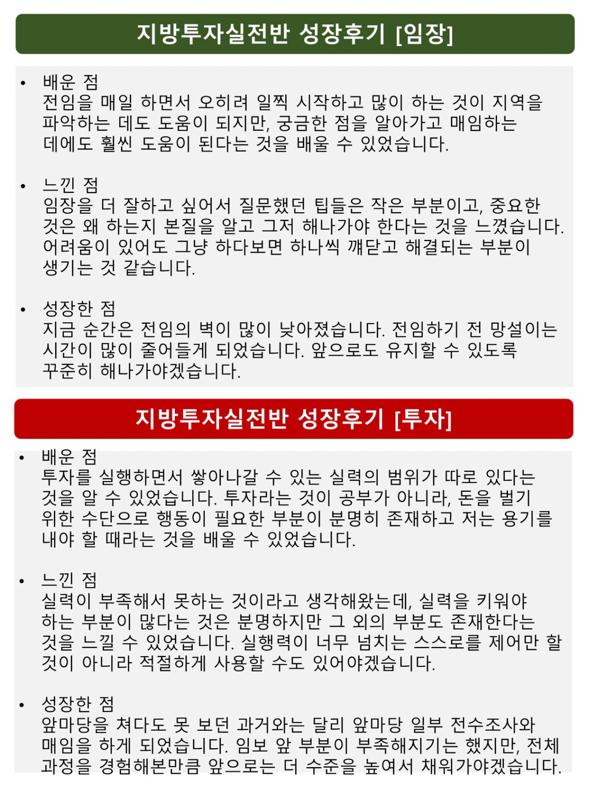 부배님 해외출장도 겹치고 이래저래 힘들었을텐데 지투실전반 일정 끝까지 마무리하고 앞마당 매임까지... 진짜 투자가 바로 눈앞에 있는 느낌인걸요? 이번 한달동안 배운거 잘 적용해서 투자 뙇 하고 좋은 소식 들려주세요👀💜항상 응원합니다 빠이팅!