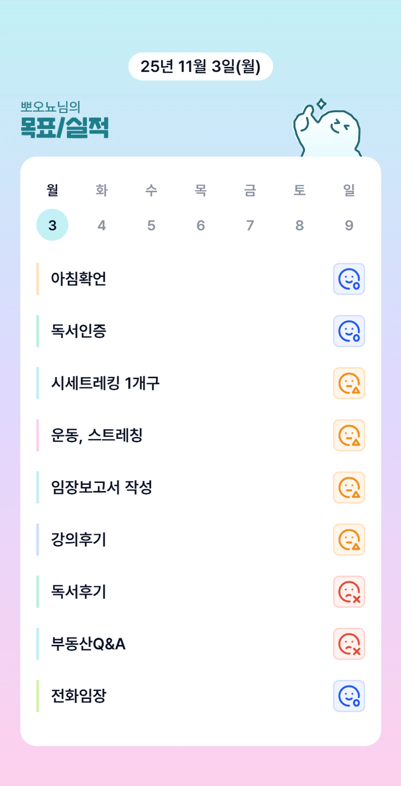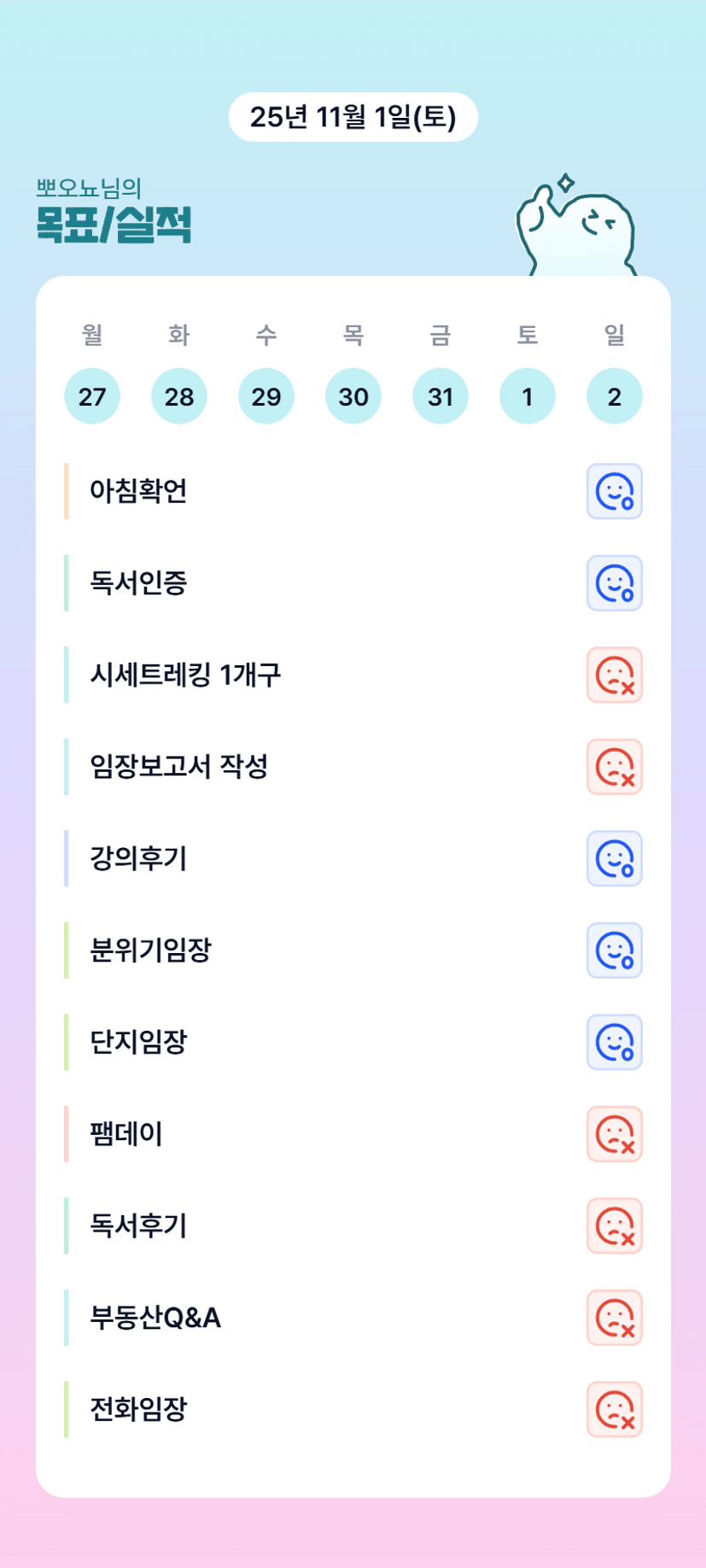 • 오늘도 이끌어주시는 진담 튜터님 감사합니다. 튜터님 1:1 성장계획서 피드백과 개인연락으로 한번더 챙겨주시는 마음에 진심으로 감사드립니다. 저에게 해주신 말씀 잘 받아들여서 스위치키고 달려보겠습니다. 감사합니다 튜터님.