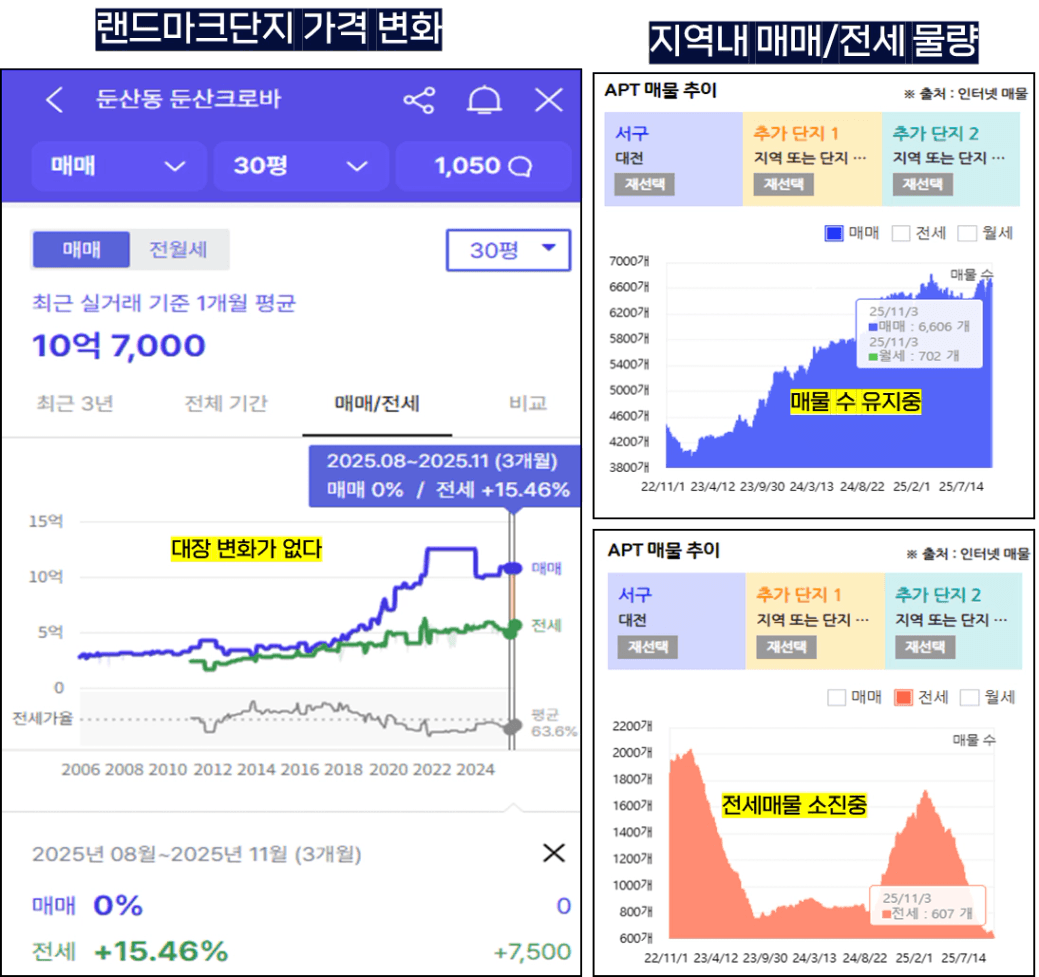 -둔산동: 매매가 보합~소폭 상승 / 전세가 편차 있음