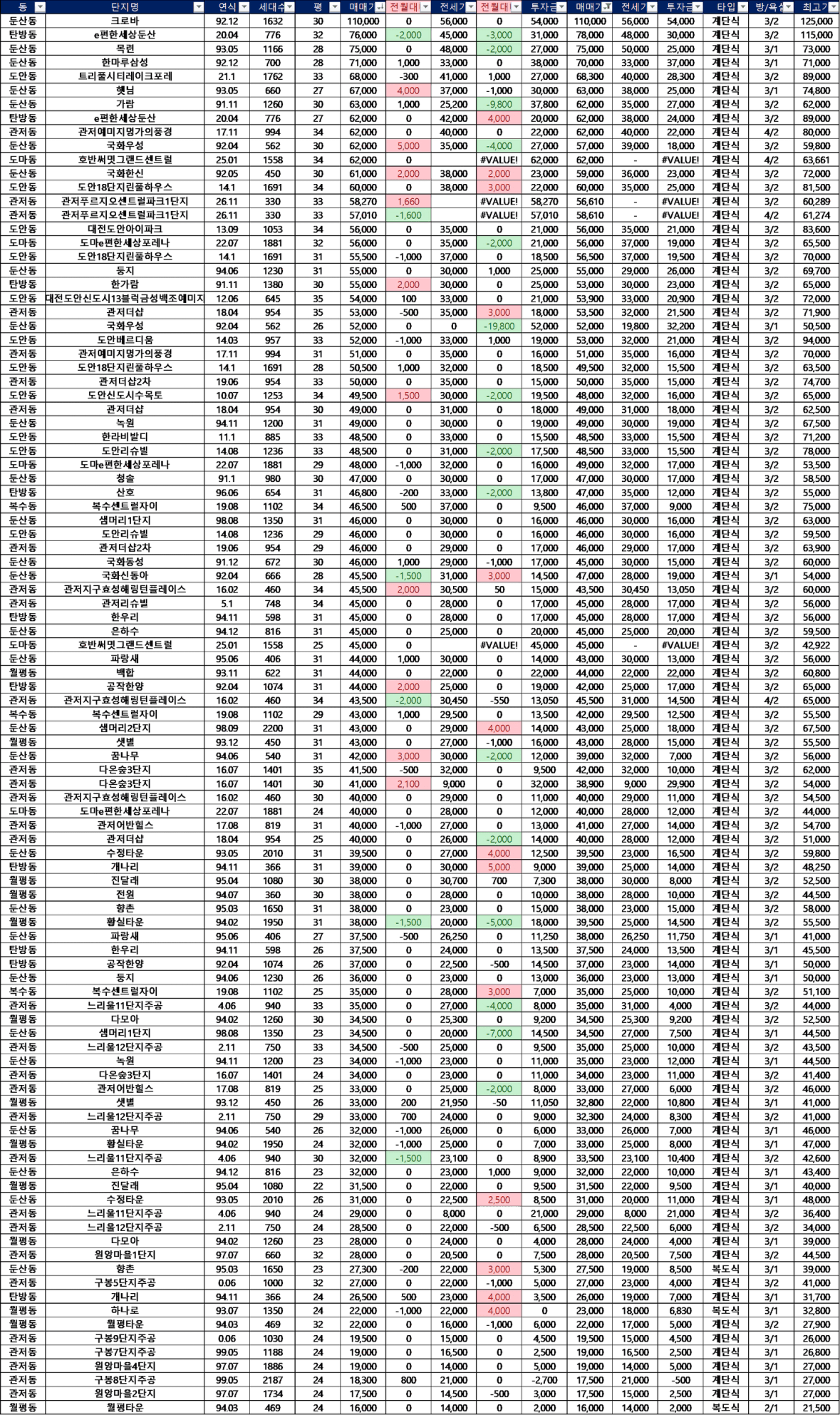 -도안동: 매매가 보합~약하락, 전세가 보합세 (풀하우스 34평만 상승)