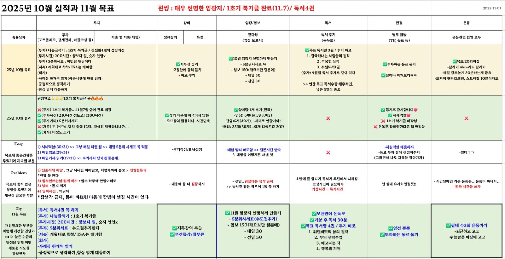 [슝슝날자] 25년 10월 복기 및 11월 계획