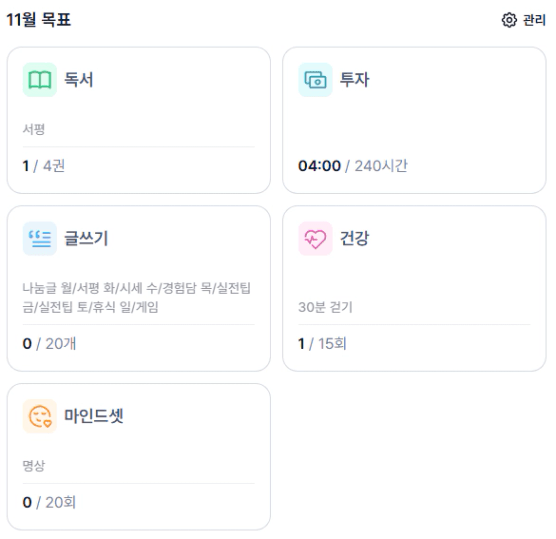 그 외 목표는 밑에 11월 목표랑 캘린더 한번 보고 가자, 스타님