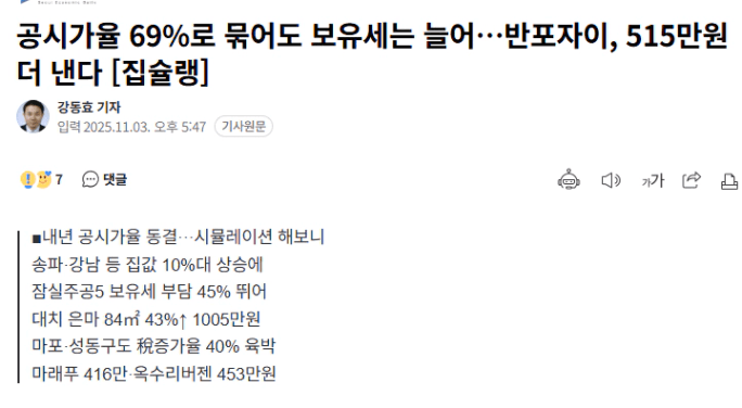 공시가율을 올리지 않는다=보유세를 올릴 생각이 별로 없다(그냥 둬도 오르는데 굳이 뭐…)=매물이 늘 가능성이 희박하다.