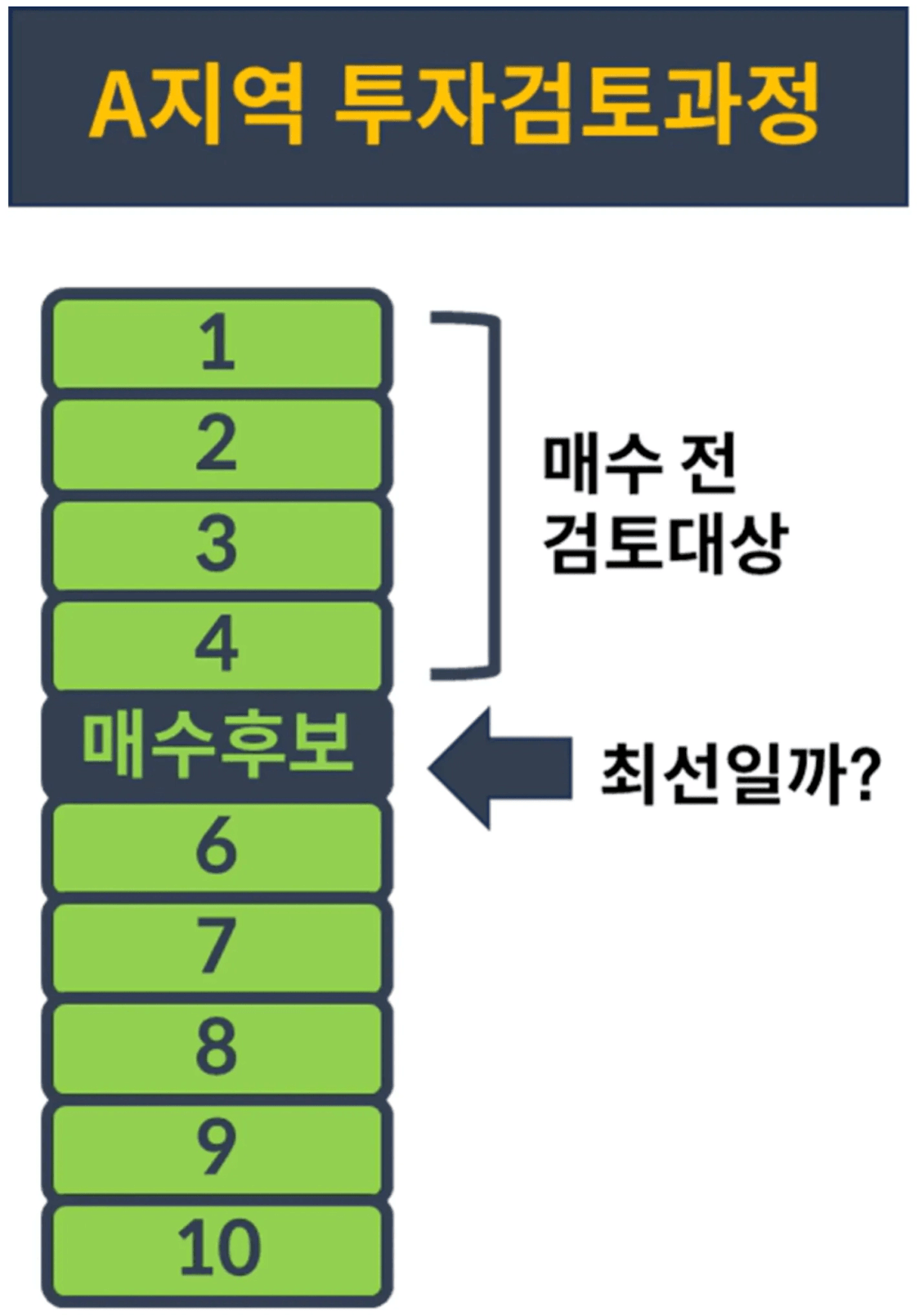 매수할 때에 있어서도 미리 후보물건 5개는 가지고 있어야 빠르게 의사결정을 할 수 있다.