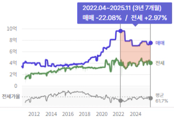 고점이 9.6억이었는데 지금 7억이라면