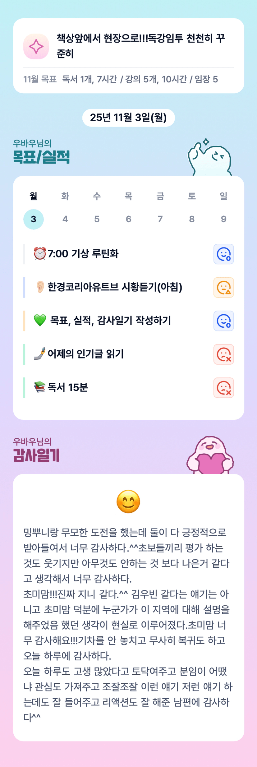 우리 생각이 잔뜩 들어간 재밌던 분임 .. 다 잊고 오늘 잘 다녀오셔요 !!!