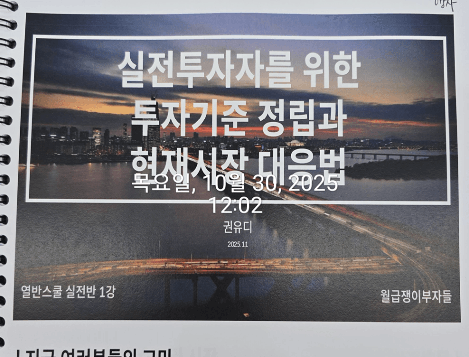 현재 1015대책 이후로 서울과 수도권 좋은 입지에 투자하고자 했던 많은 수강생분들이 투자가 어려워지며 혼란과 좌절을 겪고 있습니다. 그래서 실전반 1강을 시작하기 전에 유디튜터님께서 지금 우리들의 고민에 대해 짚어주시고 핵심을 관통하는 답변으로 시작해 주셨는데요 전 이 부분이 정말 좋았습니다.