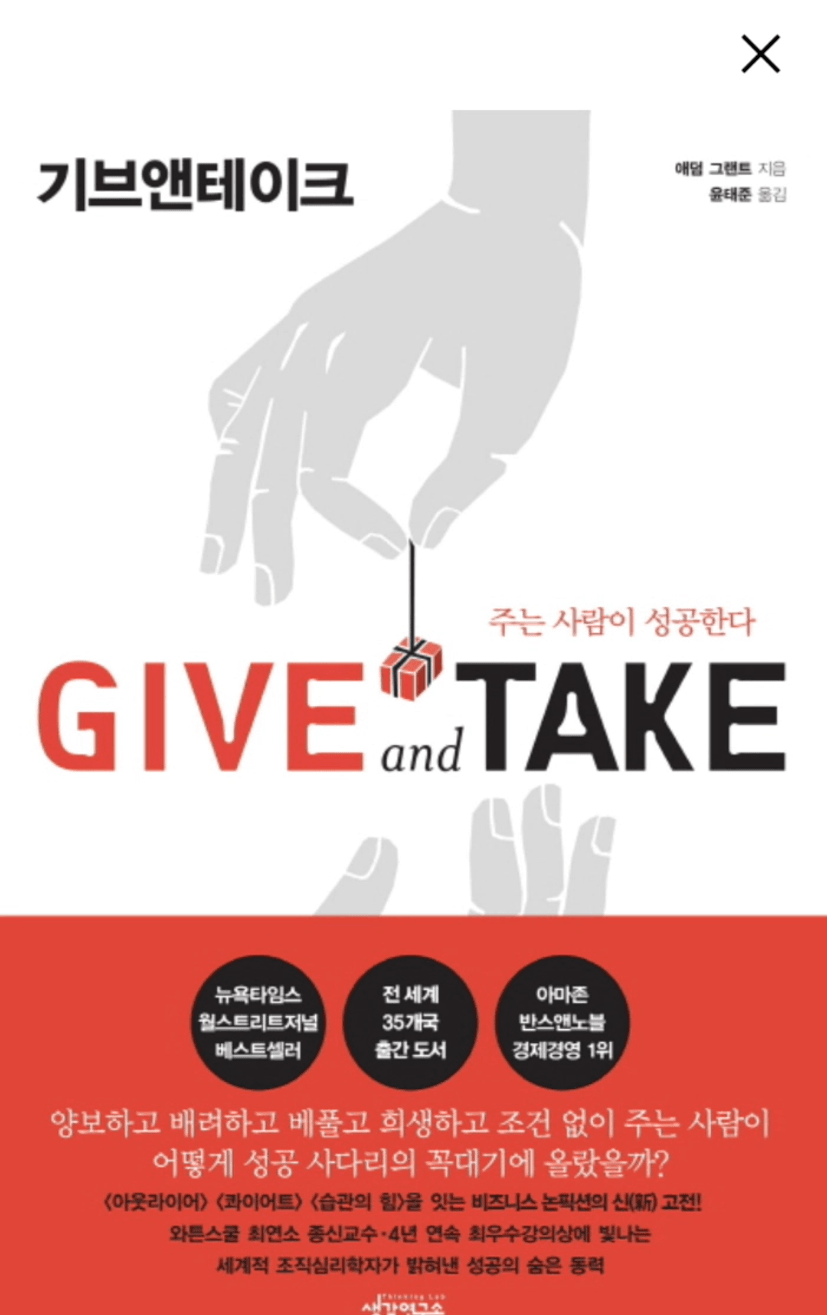 오랜만에 읽게된 책인데, 정말이지 힘들었다 요즘 이런식으로 번역이 조금 이상한 책들을 읽는것이 어렵다 너무 유명한 책이였는데, 이번에 읽는 동안은 읽는 어려움때문인지 뭔가 확 와닿는 느낌은 많지 않았다 하지만 기버라는 건 아마도 리더라는 느낌이 들었다 우리는 조직내에서 리더의 역할이 필요한데, 단순히 기버 테이커의 개념이 아니라 조직을 이끌고 헌신하는 리더가 기버가 아닌가 생각해보았다