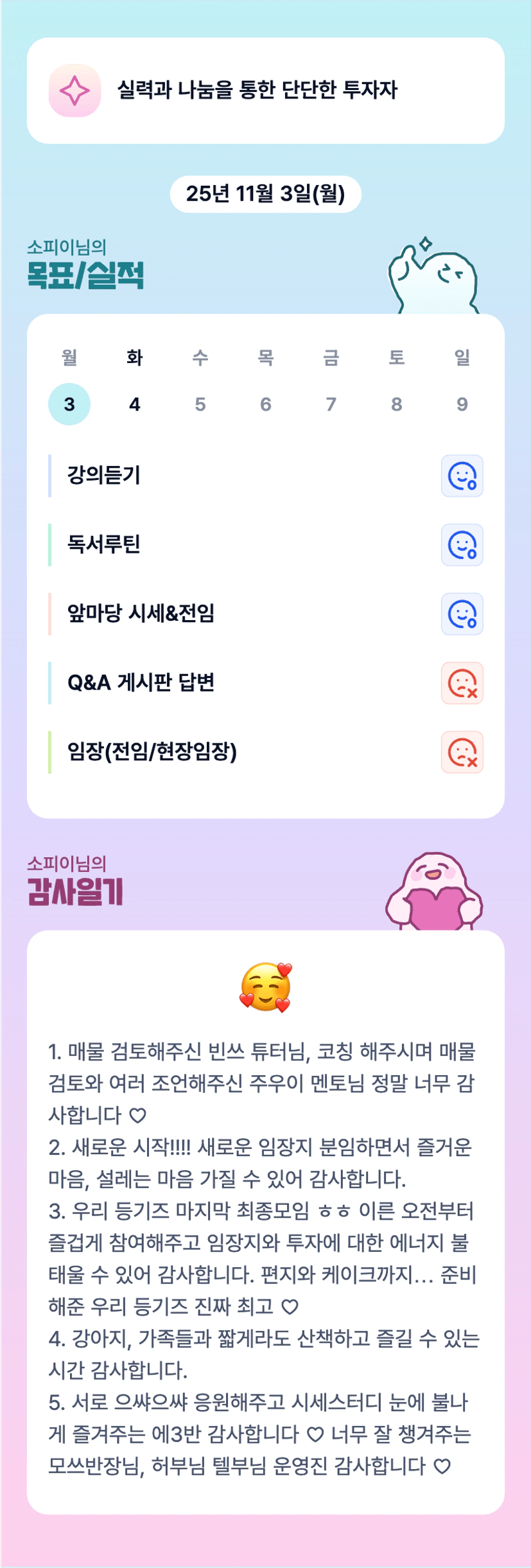 솦튜덕분에 한 주 플랜이 수월하게 톽똭톽!!! 어떻게 하지 싶은거 미리미리 샥샥 긁어줘서 감쟈함다😊👍❤️