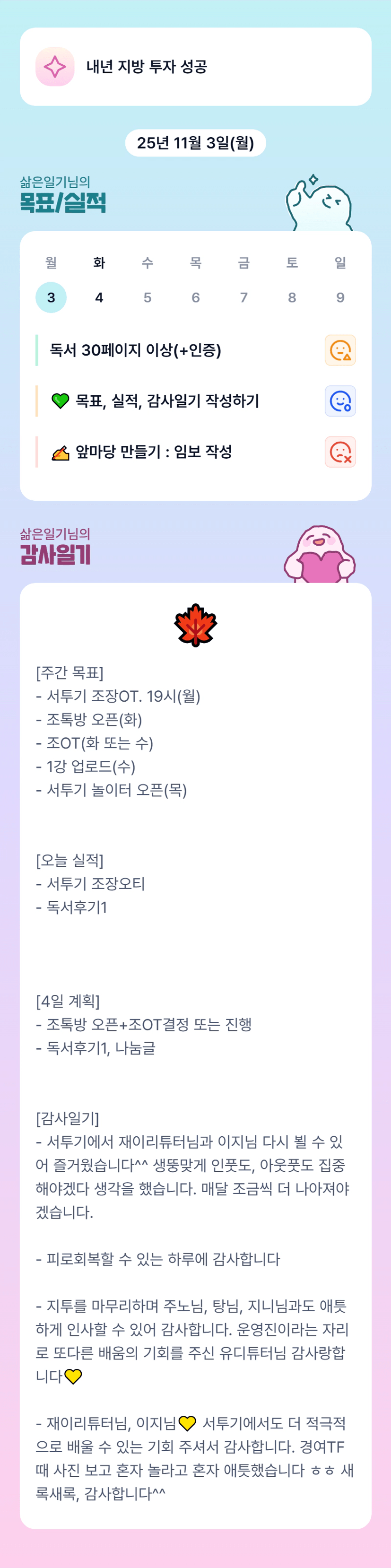 일기 조장님 11월도 빠이팅입니다~~ MVP 다시 한 번 축하드려요🥳