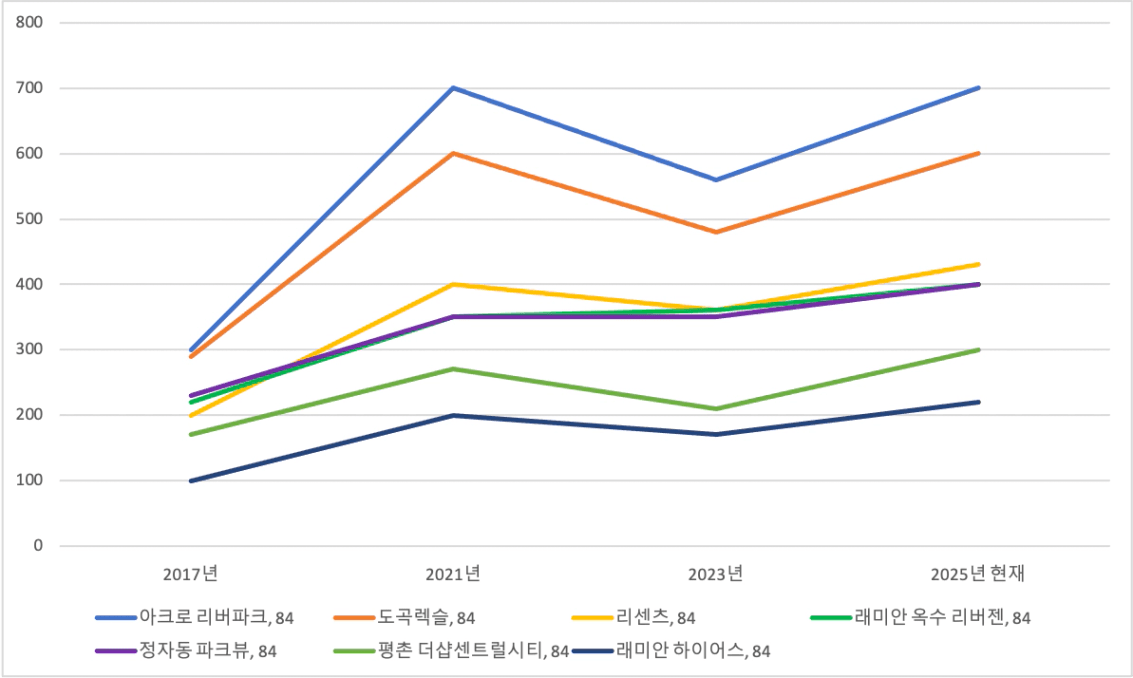 주요 핵심 단지들의 몇몇 월세 가격 변화를 살펴보면요